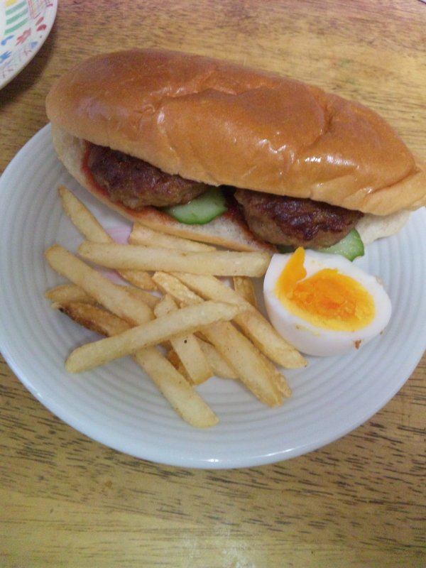 かつサンド、ハンバーグサンド、卵サンド・・・ポテト付き。
