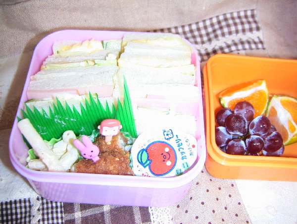 今朝は、昨晩ご飯を炊いていなかったのでサンドウィッチべんとうにしてみました。