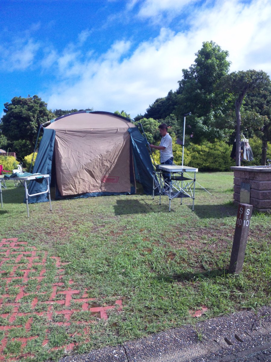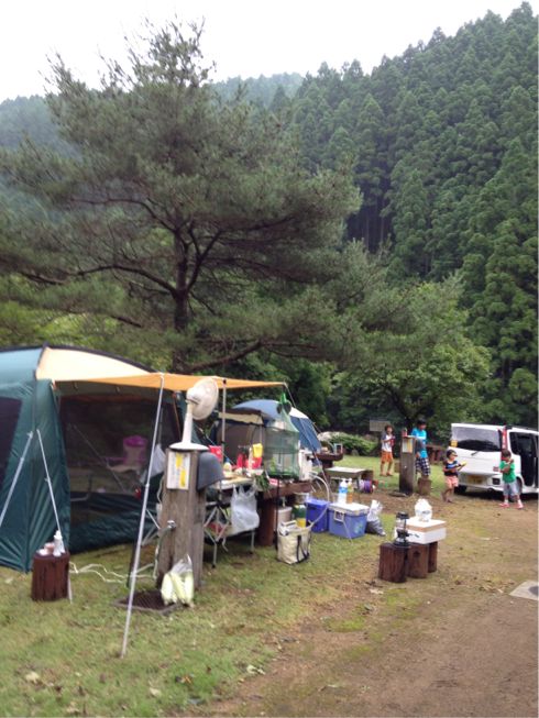 2日目のキャンプ。夜中雨が降ったりやんだりあいにくの天気。