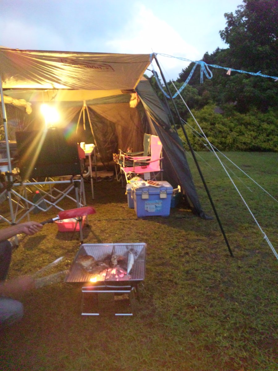 雨も降ったり止んだりでしたが、火をおこしてバーベキューも出来たので良かった。