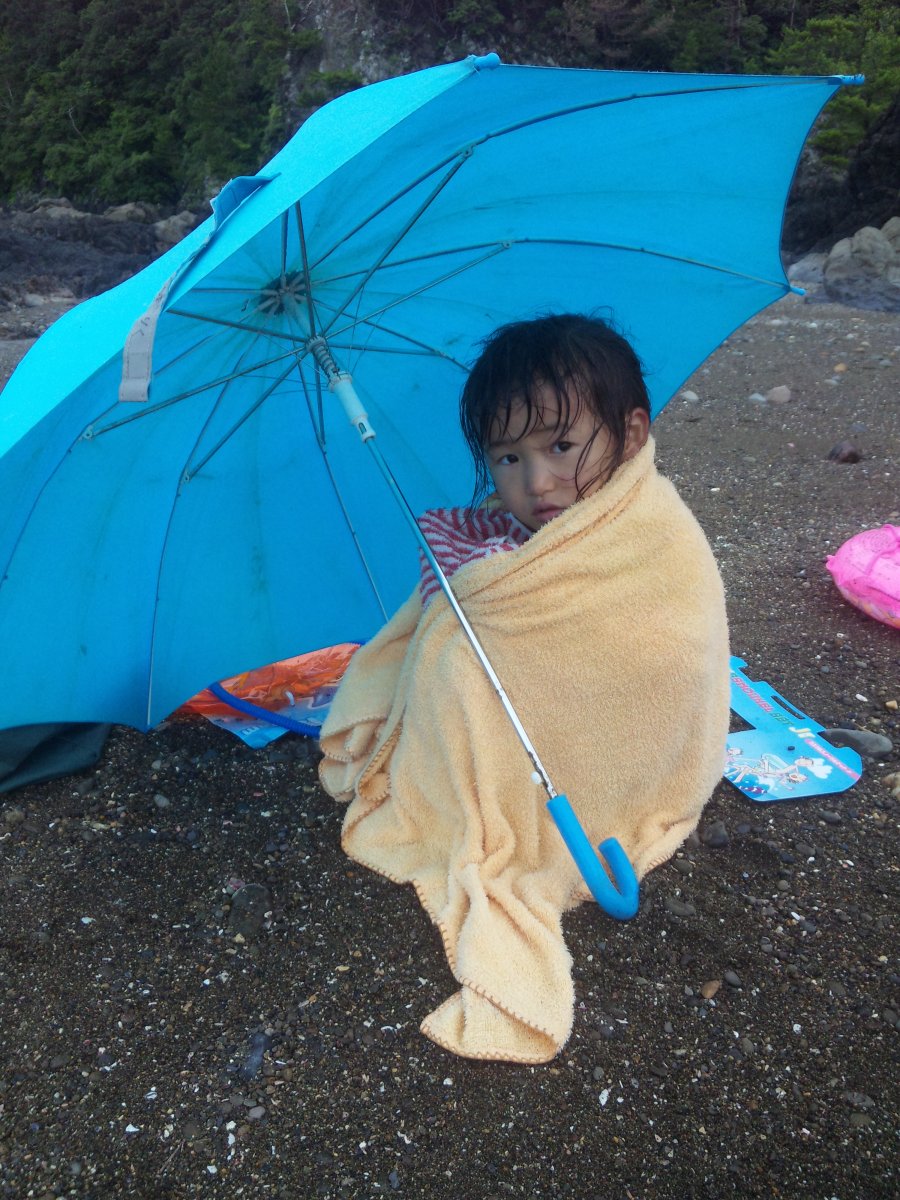 少しの晴れ間を見て、キャンプ近くの海へ行ってみた。