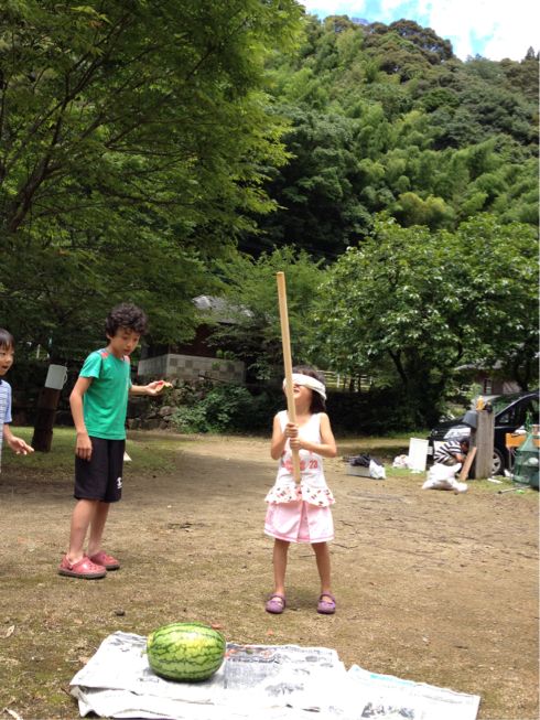こんな晴れ間もあり、スイカ割りも楽しみました。