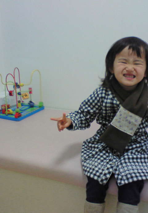 先生にインフルエンザの検査を鼻からしてもらい少し嫌がっていましたが、泣かずにがんばりました。