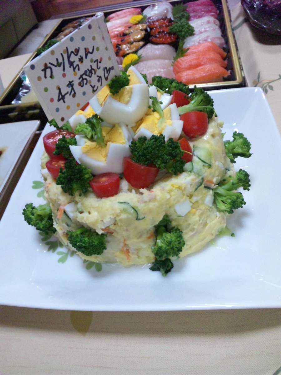 そして、デコレーションケーキ風ポテトサラダを作りました。