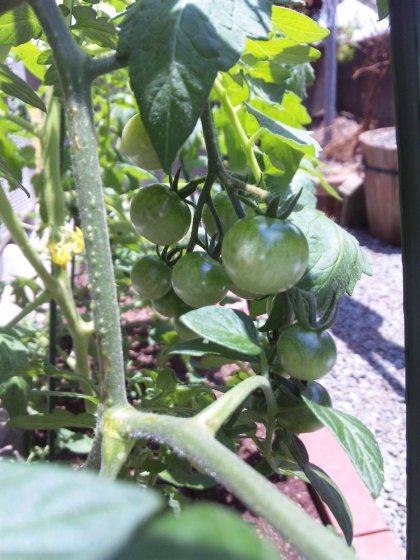 トマトにも実がなり、ピーマンもすっかり収穫できています。