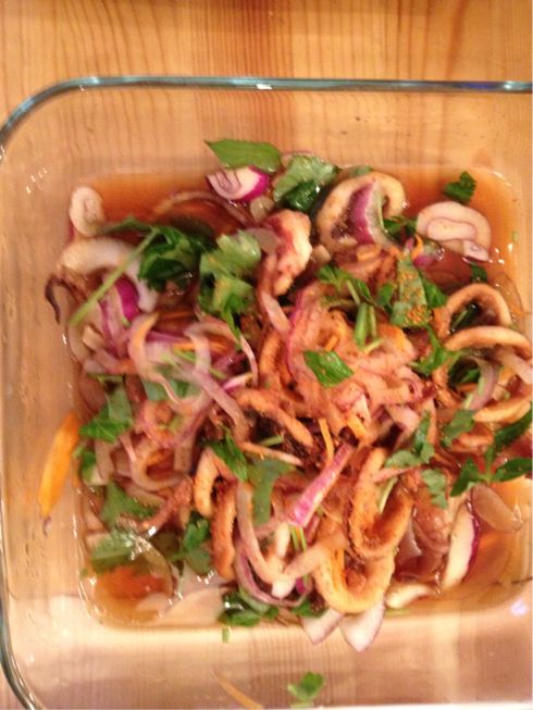 いか南蛮、鉄火巻き、唐揚げ、手作りギョウザなど。