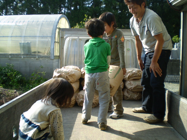 田舎に子供と主人が帰り米の収穫に行ってきました。私は深夜入りなので今回は不参加。お米はすでに収穫されていましたが、脱穀し袋詰め、車に乗せるという力仕事をしてきたそうです。