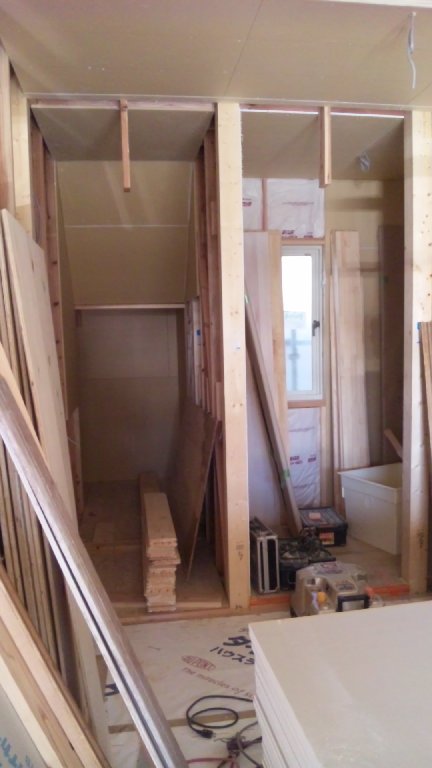 お風呂や家事室の棚、一階トイレの棚なんかができてる。