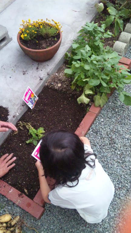 とりあえず、ジャガイモの収穫のあと花の種を植えました。
