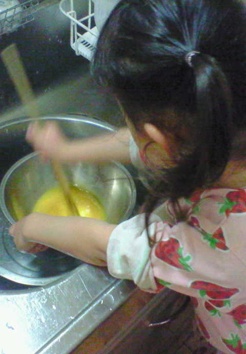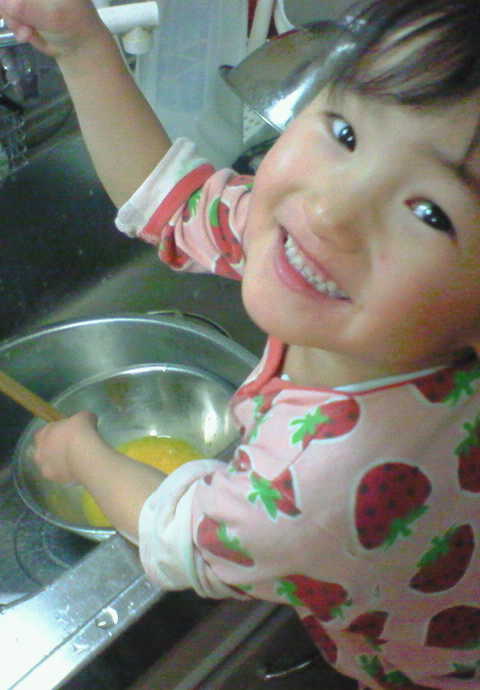 卵を割って混ぜていました。上手、、、、、、、。