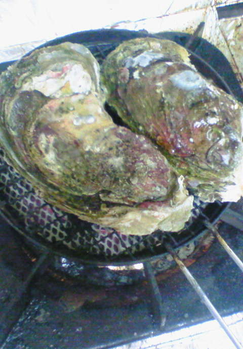 早速コンロで焼いていました。