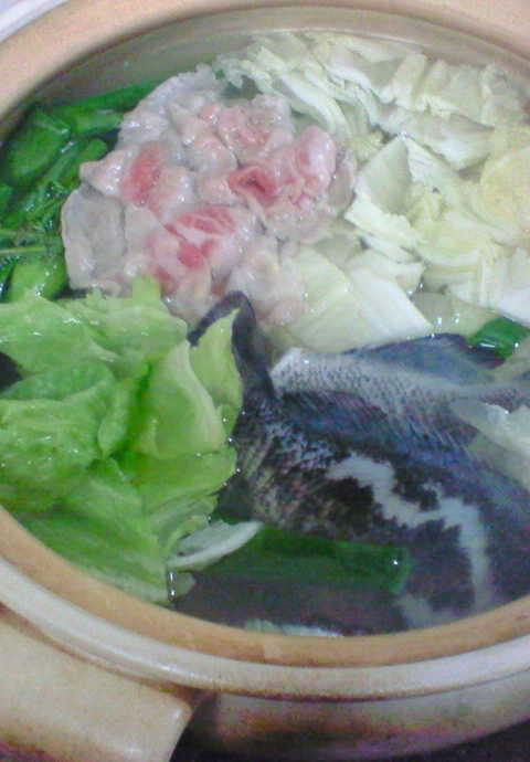 そして昨日は近所に住んでいたオンちゃんがグレを釣ったともってきてくれ鍋にしました。