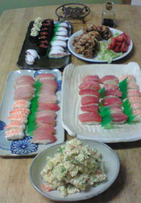 という事で握りずしやから揚げ・ポテトサラダと子供達の大好きメニューになりました。