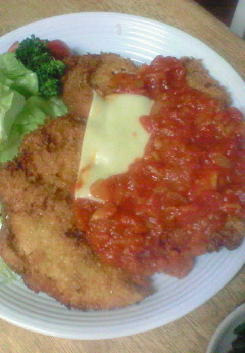 今日は、鶏肉が安かったのでチキンカツを・・・。