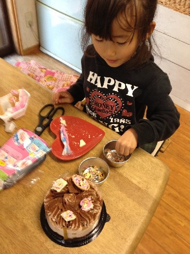 毎年ケーキを買ってはあまらすので小さいケーキに自己流デコを・・・。