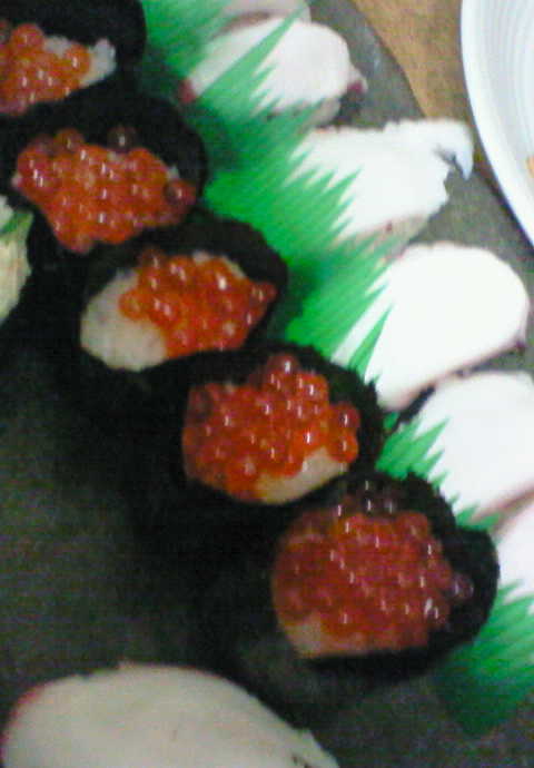 寿司ネタは、中トロとまぐろ、イクラ、たこ、えびなど・・・・。
