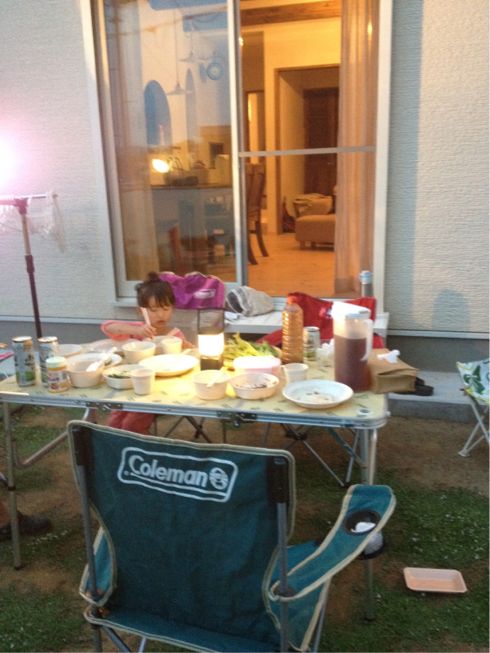 先日、新居で初バーベキューをしました。庭に,テーブルとチェアーをだし,ランタンも準備(=^ェ^=)