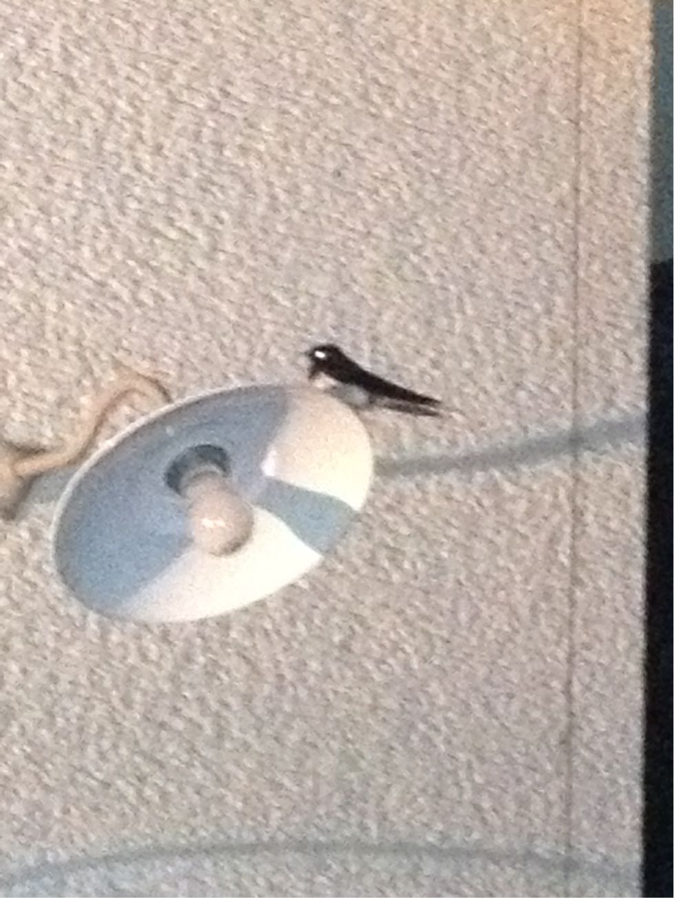 ふと、みると玄関の照明に一羽のツバメがとまり、じーと動かず。