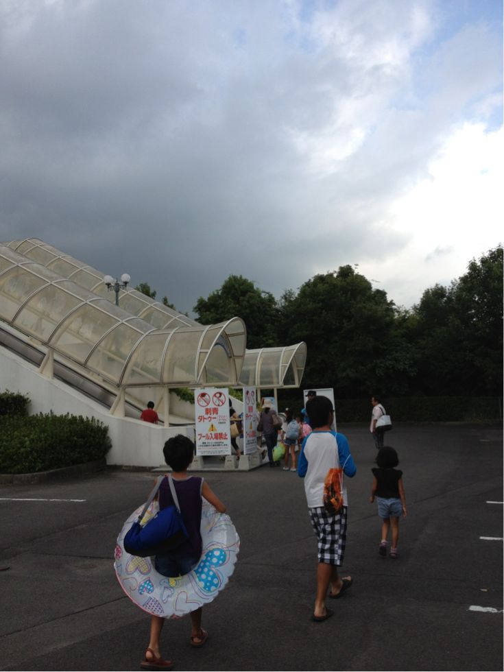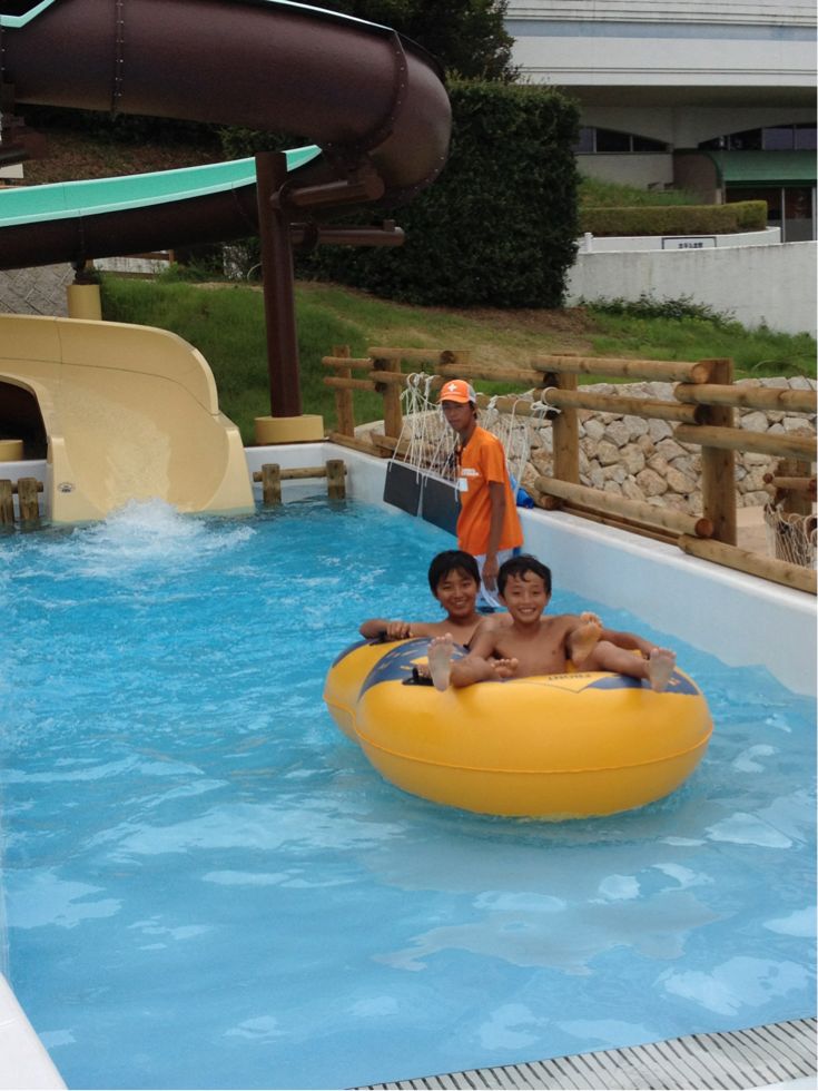 兄たちはふたりで、ウォータースライダーに、娘は背が足りず滑れませんでしたが。