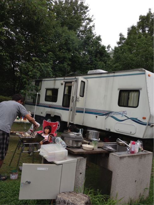 今回、テントは暑いし寝れないとのことでクーラー付きのトレーラーハウスにしてみた。