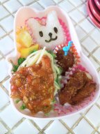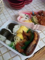 リクエストのウサギのおにぎり・・スパゲッティ・・チキンカツ・ミートボール・・卵焼き。