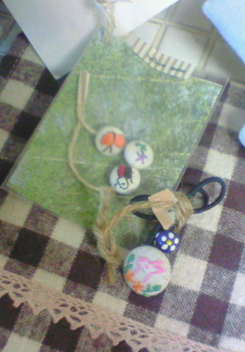 娘と私のマフラーと刺繍のくるみボタン・・・。