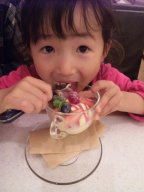 私好みのカフェ発見。パスタランチを・・・娘はイチゴアイス・・・。うれしそう。