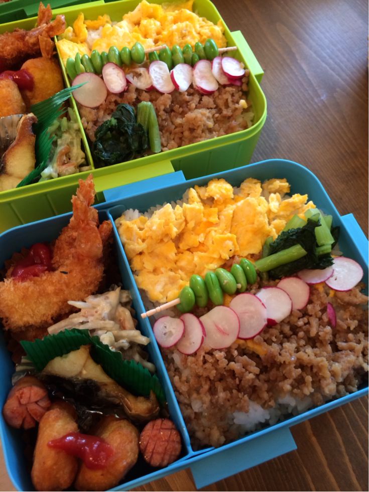 できあがった3つの弁当。
