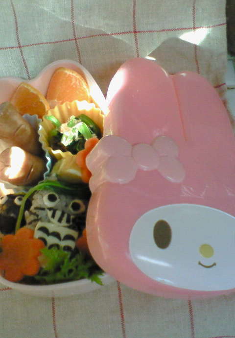 先日オークションで一目ぼれして買ったマイメロのお弁当箱につめました。