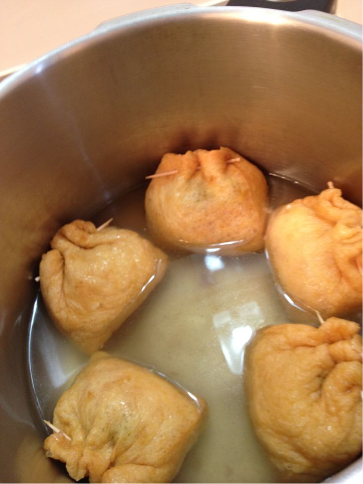 おあげのなかに色々入れて巾着にして煮含めるのが食べたいと思いつくりました。
