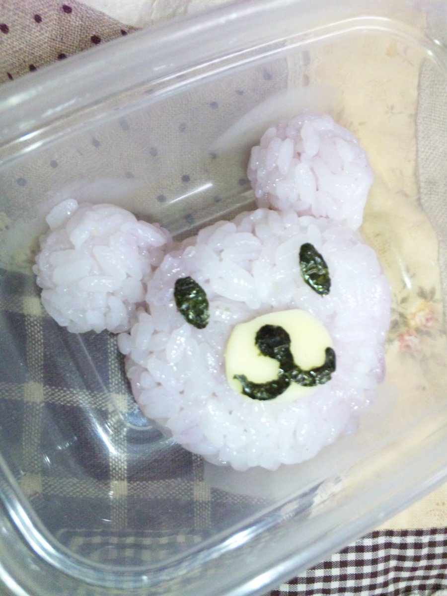 そして先日はご飯嫌いの娘のために、くまさんおにぎりを作ってもたせてみました。