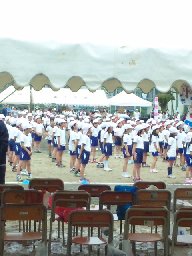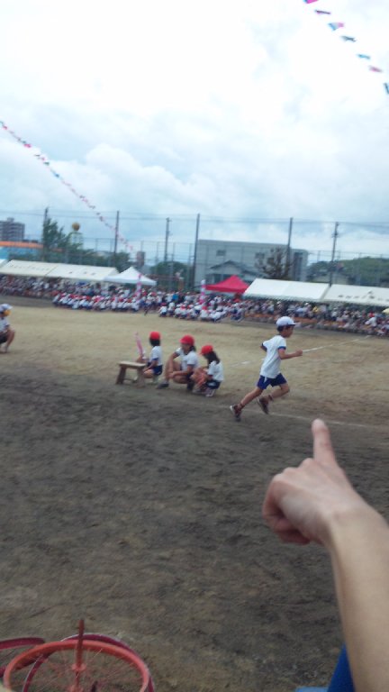 運動会では、暑い中多くの保護者の方がいていつもお世話になっている英語塾の先生や保育園の先生