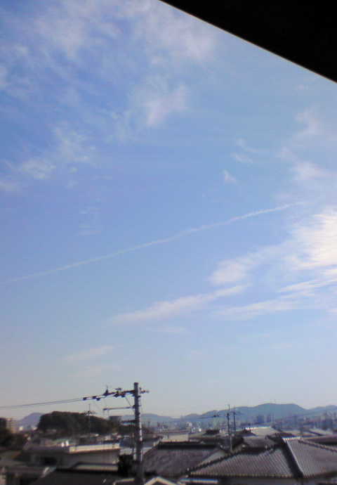 飛行機雲を発見。