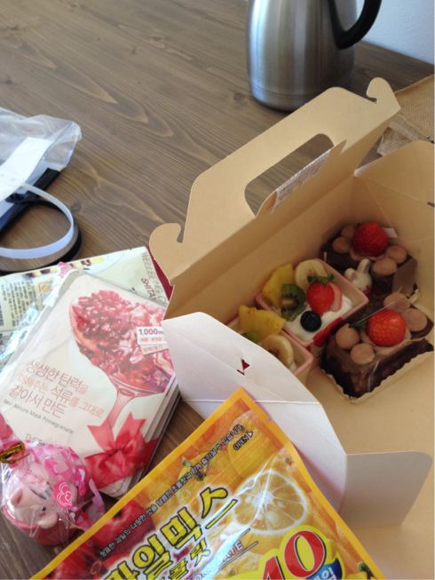 今朝は、深夜明けにも関わらずMちゃんが自宅にケーキ、韓国のお土産、新築祝い、しかもお悔みまでいただきました。ほんとにありがとう。