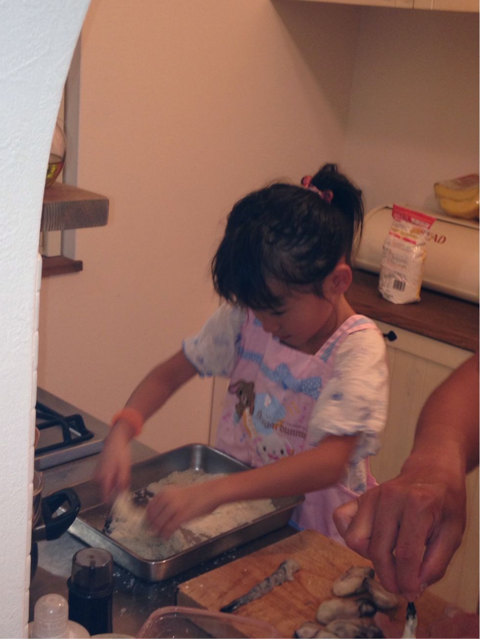 台所でお手伝い。