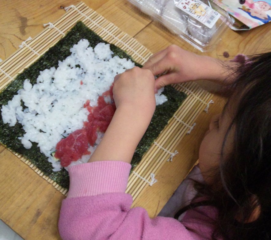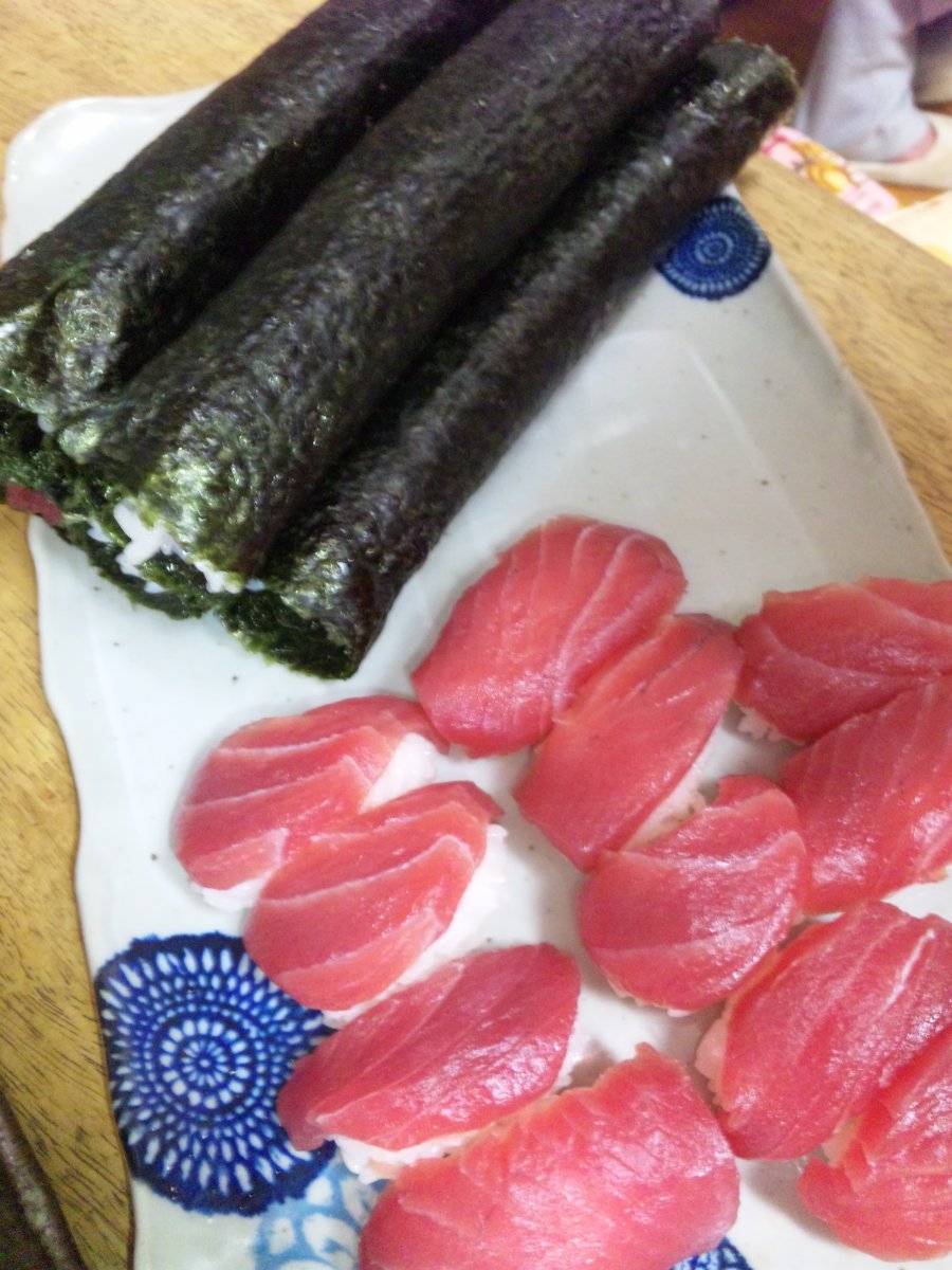 結局、5本の巻物とマグロの握り【父ちゃん作】の出来上がり。