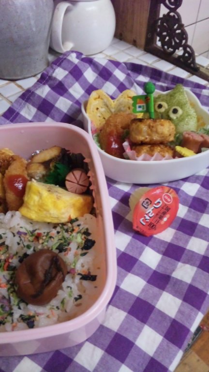 おかずは鶏肉のてんぷらとイカ天を揚げました。