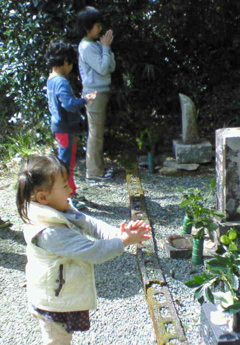 お墓のお参り小さいながらも一生懸命拝みます。
