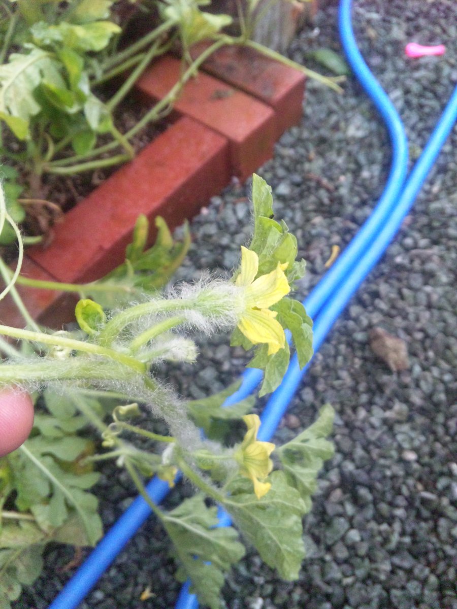 もう一つ・・・・スイカの花の根元にも小指先くらいのみを発見!