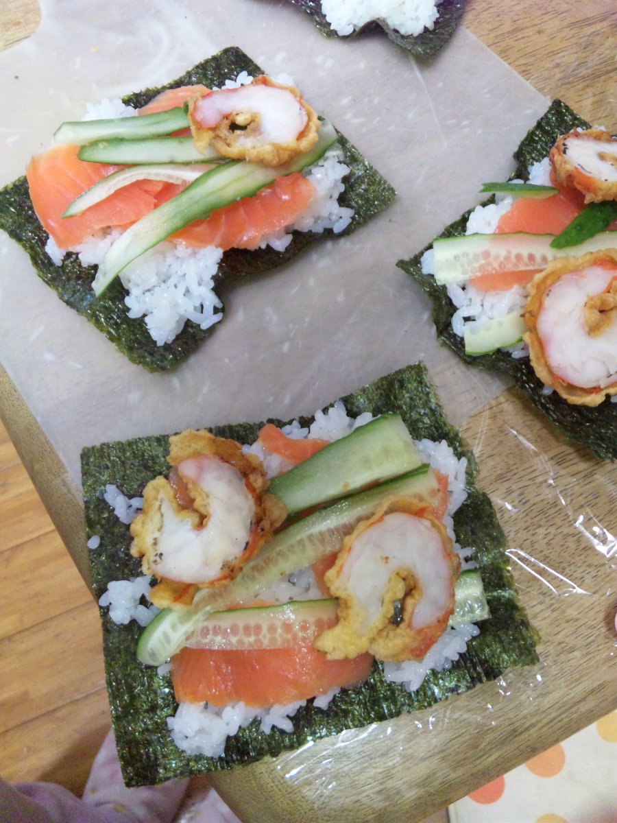 シャリを握ってねたをつけてなかなか面白いけど難しかったな。