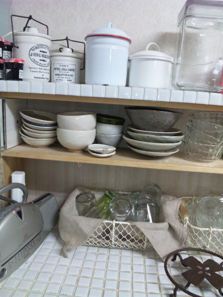 部屋が狭いので、食器やお鍋・・・お弁当箱に水筒・・・。