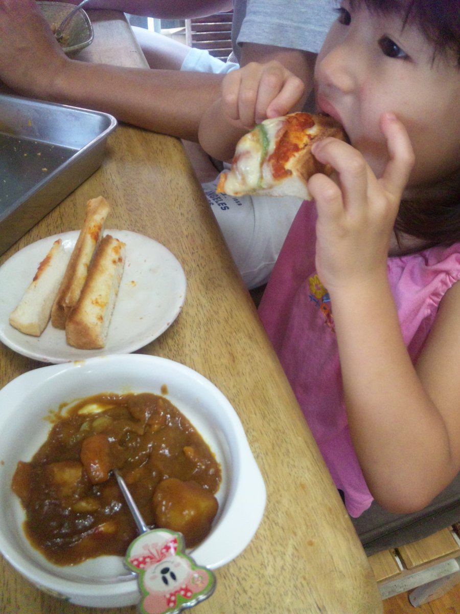 今朝は、ピザトーストと朝から次男君リクエストのカレーを作りました。