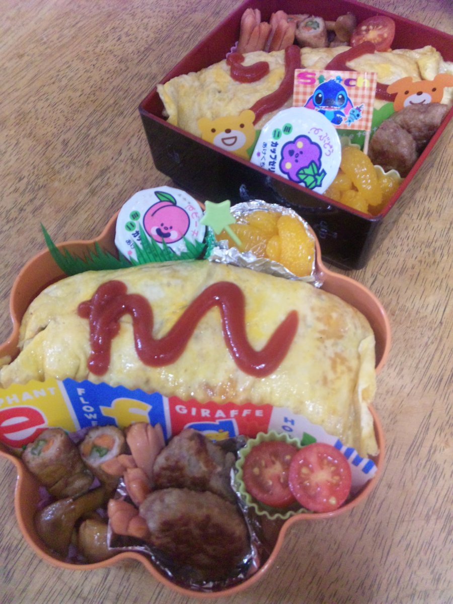 そぼろ入りおにぎり・卵焼き・トマトサラダ