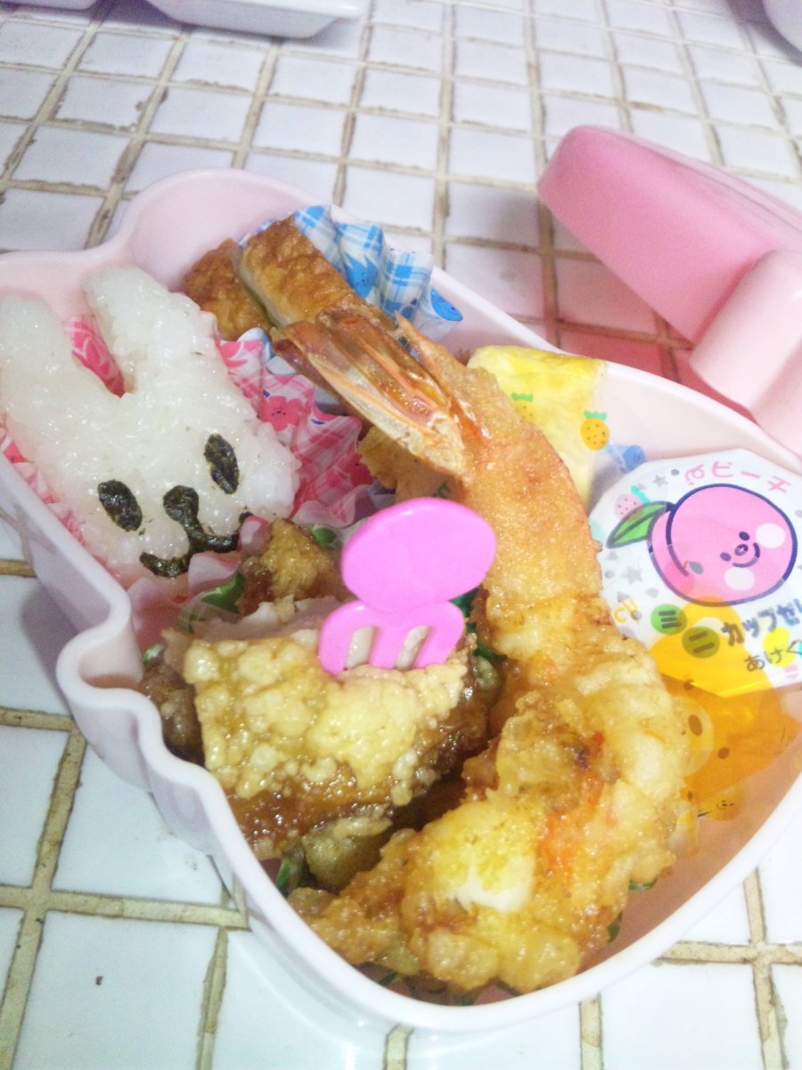 お菓子が食べたくて必死でお弁当食べている娘・・・・。