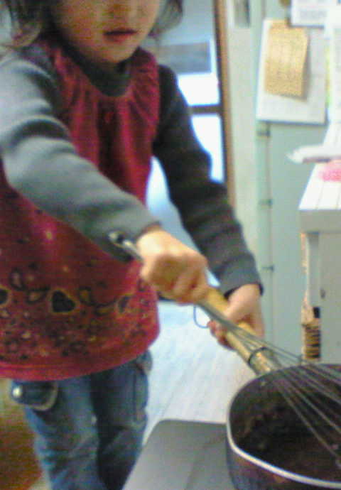 途中味見といって口の周りはチョコだらけ・・・。