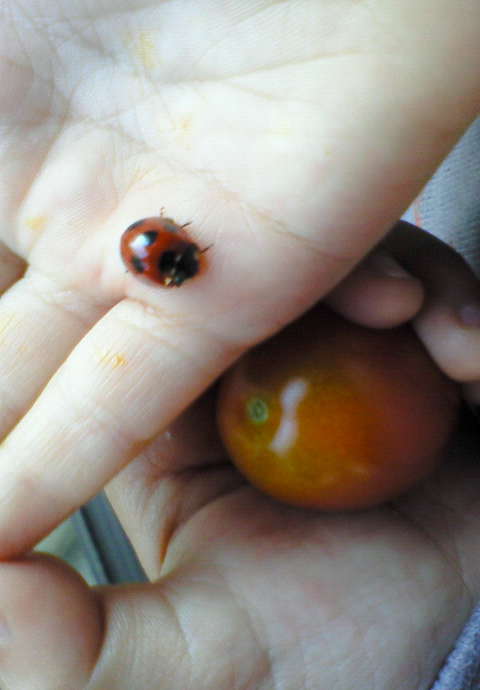 娘は庭でてんとう虫を見つけ大喜び・・・・