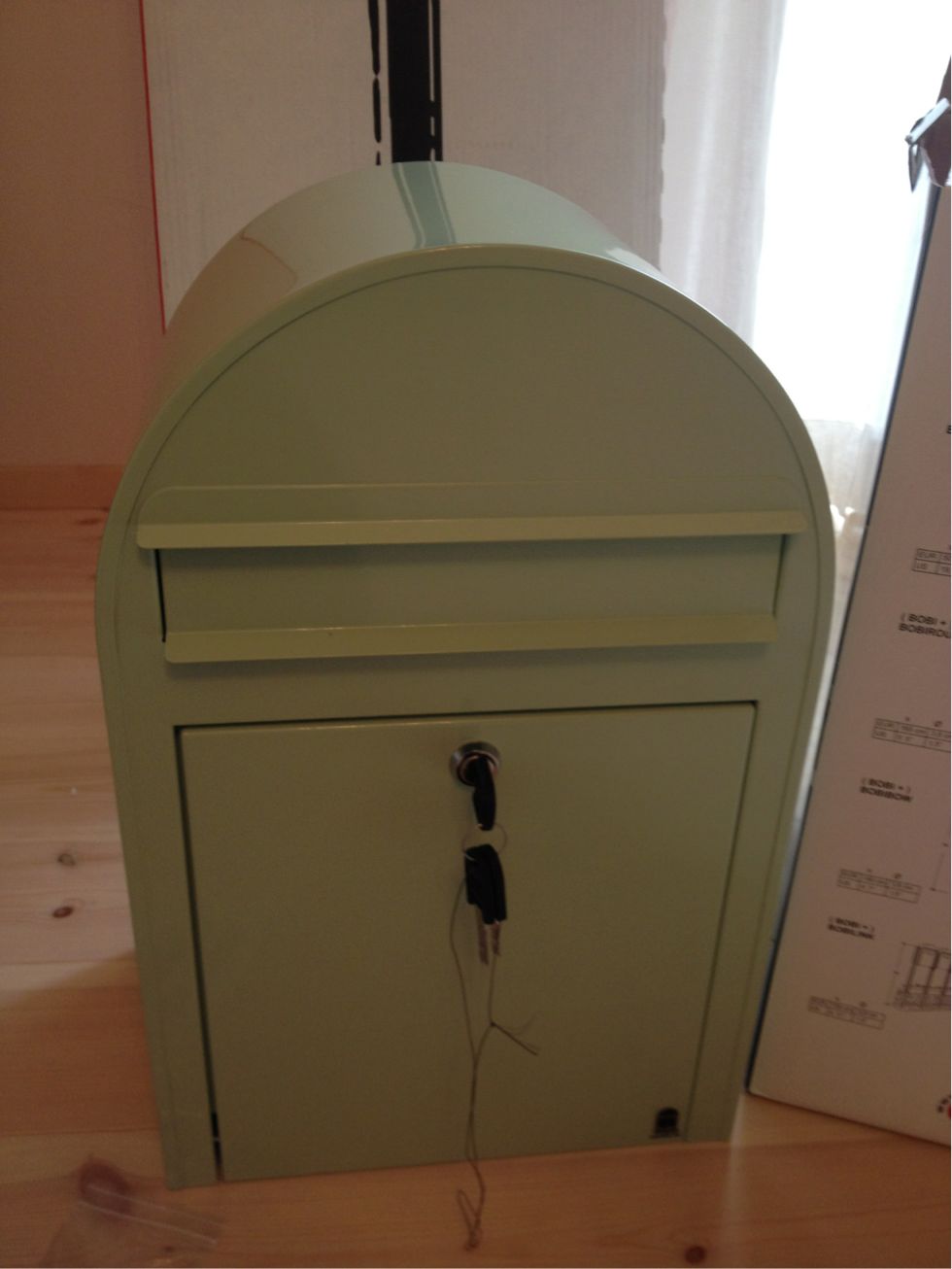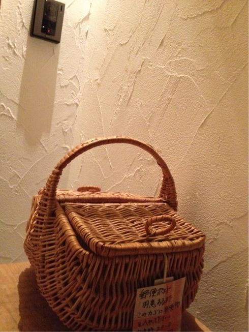 まだ、ポストがないので玄関先にかごを用意してます。