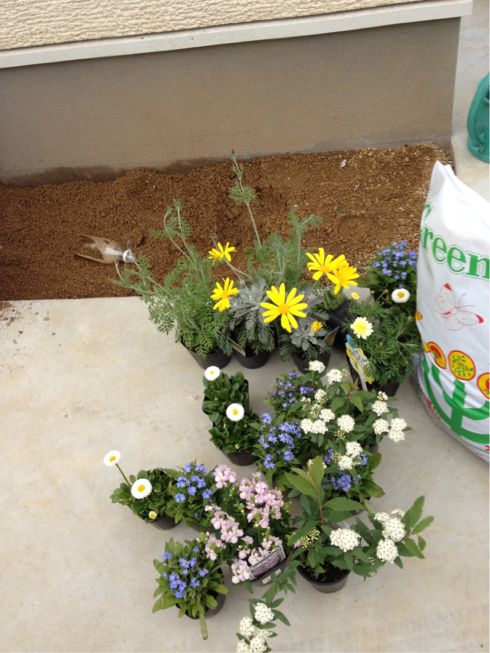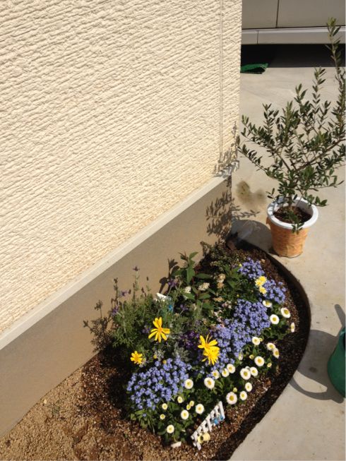 先日ネットで買った、リビア、西洋ニンジンボク、花屋さんでえらんだオリーブを旦那や子供たちに手伝ってもらい植えました!