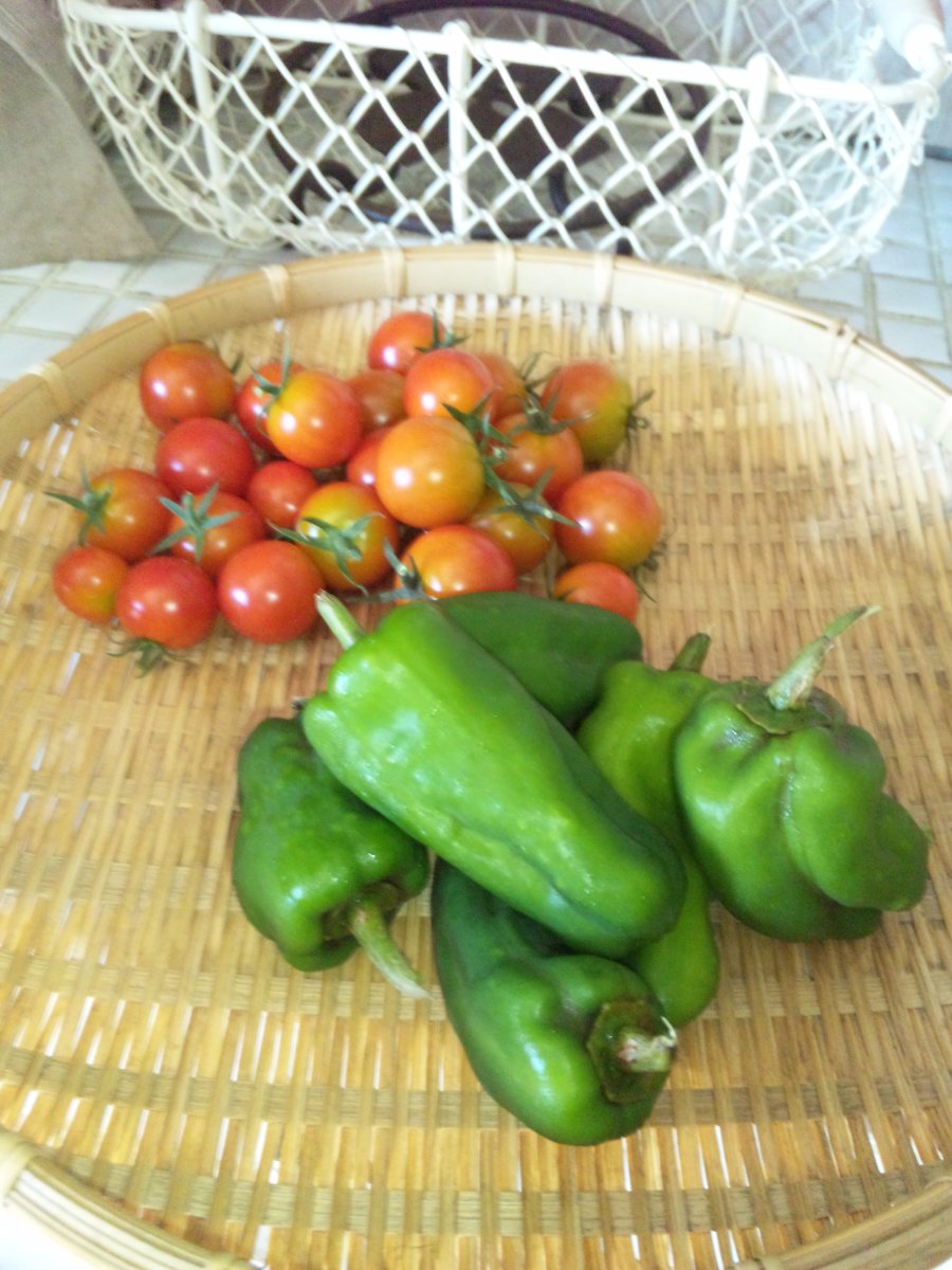 唯一、トマトとピーマンたくさん実をつけ我が家の食卓へ・・・・。