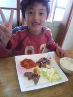 土日と宿毛でサッカー大会に行っていて、一点ゴールした!と笑顔の彼。